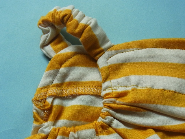 - 肩ヒモはずれ防止とデザイン性を兼ねたギャザー入りヒモになります。SSサイズ~Mサイズは7mmゴム各1本入り。Lサイズは各2本入り。袖ぐりにもゴムを入れていますのでサイズ対応や脱ぎ着がとっても簡単です。